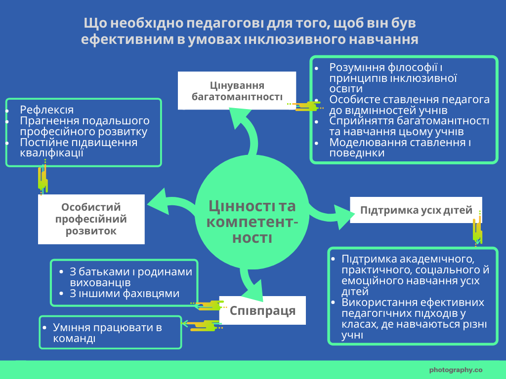 - збагачення інклюзивними підходами існуючої практики організації освітнього процесу.