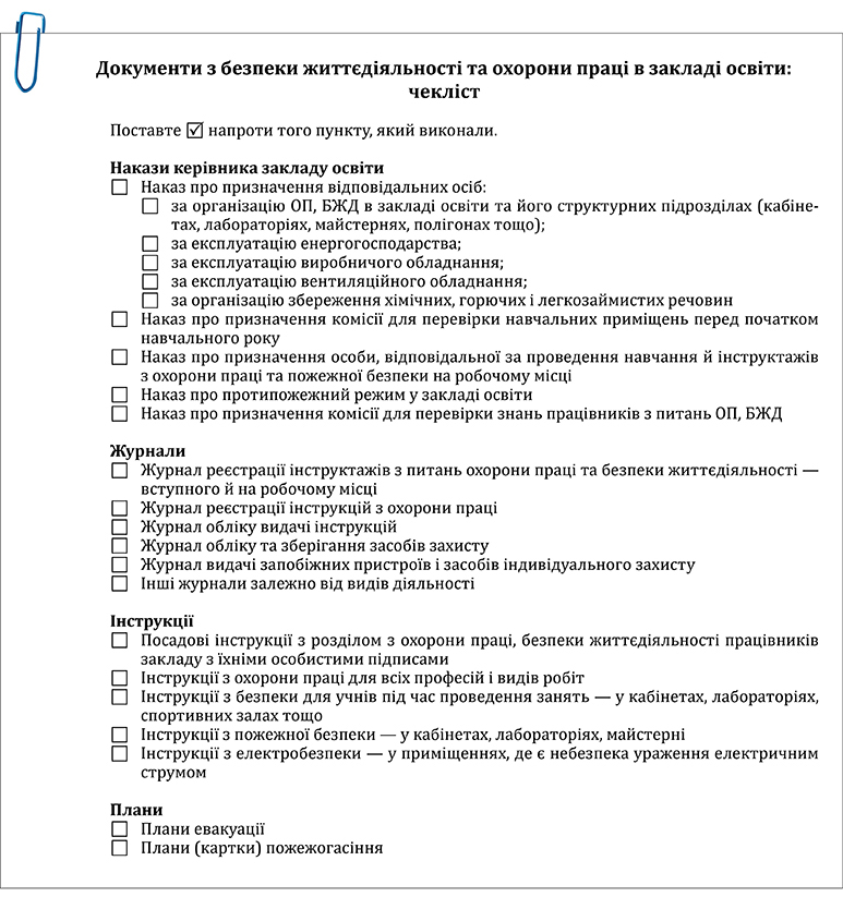 Документація з охорони праці в школі: чекліст
