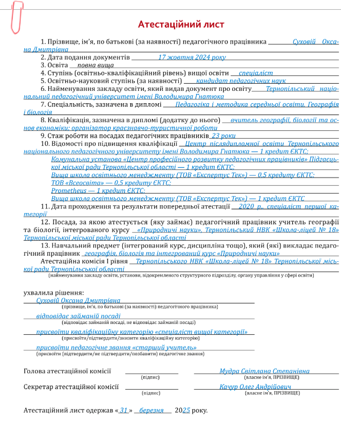 Як заповнити атестаційний лист педагогічного працівника? Який вигляд має заповнений атестаційний лист учителя?